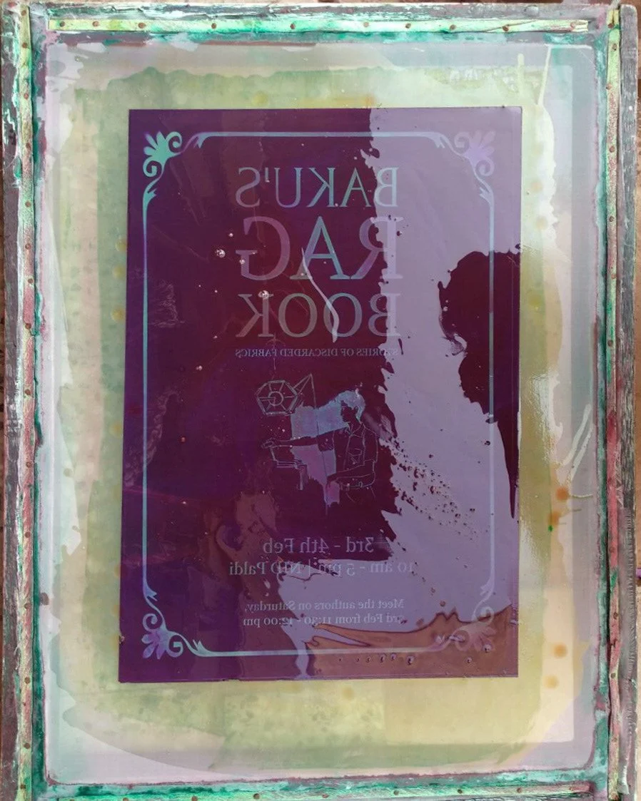 A limited edition of 50 copies was screen-printed, with each copy rendered unique through the use of varied rag pieces. Individual screens were developed for every page, and the content was printed directly onto cloth that was carefully cut, pressed, and bound. Black ink was used for the text, while illustrations were printed in a contrasting color.